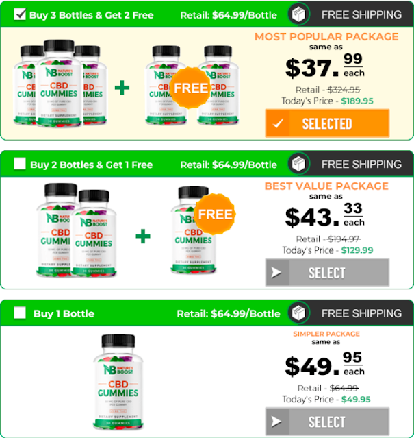 Nature's Boost CBD Gummies can be purchased directly from the manufacturer's website. They offer a range of package deals, including a free trial offer for first-time customers. It is important to ensure that you are purchasing from a reputable source to ensure that you are getting a high-quality product.